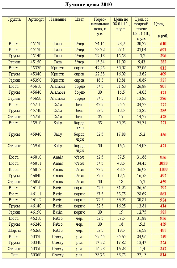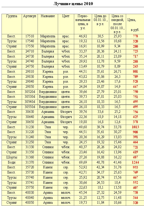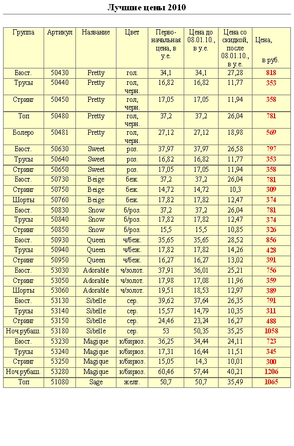 С 8 января 2010 г. в компании пополнился ассортимент распродажи. На корсетное белье из каталога "ЛУЧШИЕ ЦЕНЫ 2010" действуют постоянные скидки ОТ 30% ДО 60%.