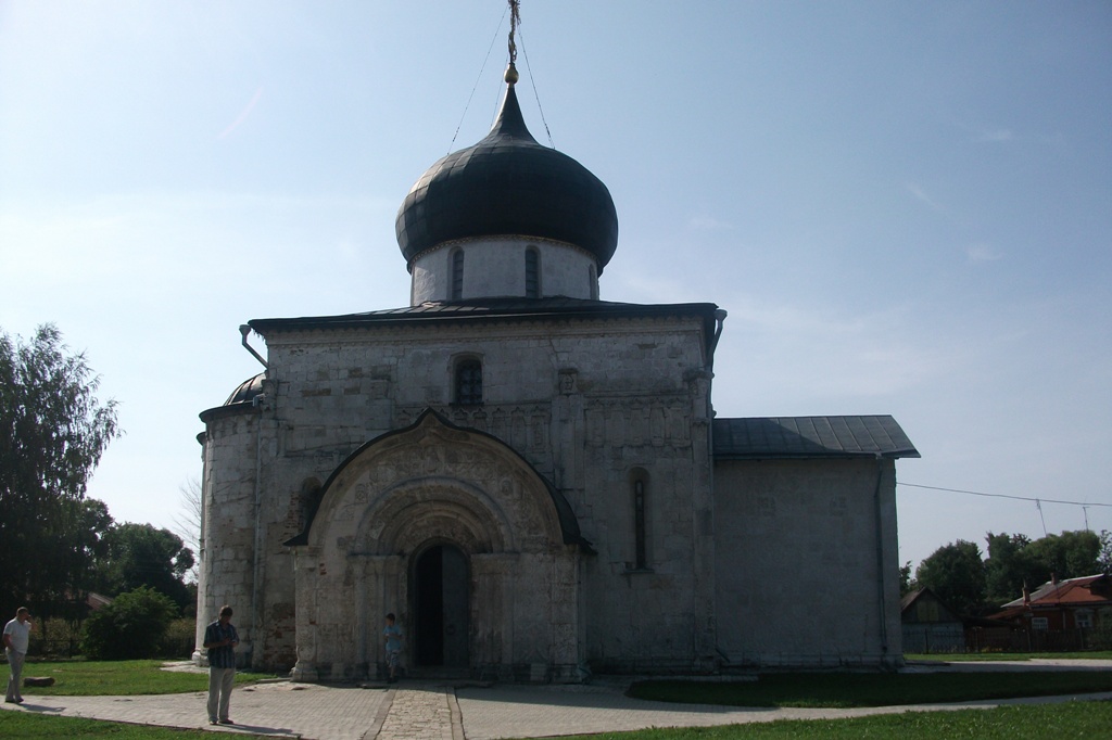 Знаменитый храм который мы хотели посмотреть, это Георгиевский собор. Это один из немногих оставшихся храмов с резьбой по белому камню. Говорят камень везли из Москвы, на подводах. Считается, что строители Успенского собора в Москве взяли за основу композиций рельефы Георгиевского собора. К сожалению в 15 веке часть храма обрушилась и увидеть резьбу в полном объёме стало невозможно. Часть барельефов находится в самом храме.