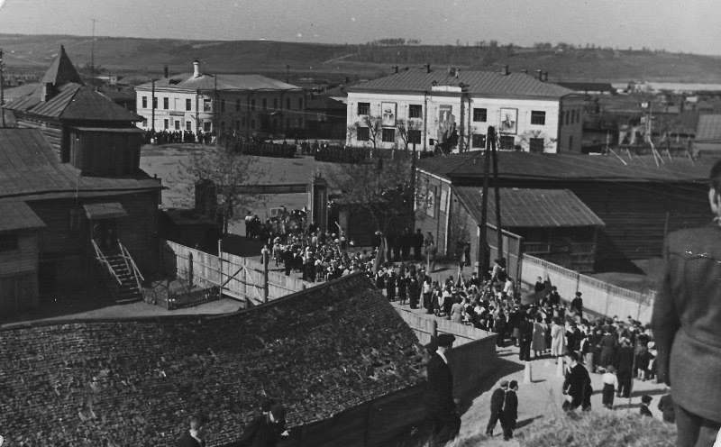 Там где сейчас "Возрождение", раньше был горком ВЛКСМ, рядом здание называлось "Верхний продовольственный магазин", следующее - аптека, там всегда морфинист(-ка) обитал(-а) и звали его(ё) в народе Саша-Маша, поскольку никто не знал, мужчина это или женщина, на противоположной стороне, при выходе из вала, была палатка мороженного, впоследствии в 60-е, сделали и с противоположной стороны также палатку мороженного, по правой стороне, идя к часовне, был ряд магазинов: ткани, булочная (когда при Хрущёве было плохо с хлебом и детей посылали в булочную часам к 17, как раз привозили кукурузный хлеб, когда он был мягкий и свежий, то был весьма вкусным, но стоило ему полежать и он быстро черствел), Ближе к часовне, был ещё один продовольственный магазин, который в народе звали "Нижний продовольственный магазин". А если от часовни идти прямо к железной дороге, было Гор. РОНО, дальше одноэтажное деревянное здание - детские ясли для детей от года до 3, а дальше по левой стороне располагалось производство газированной воды.