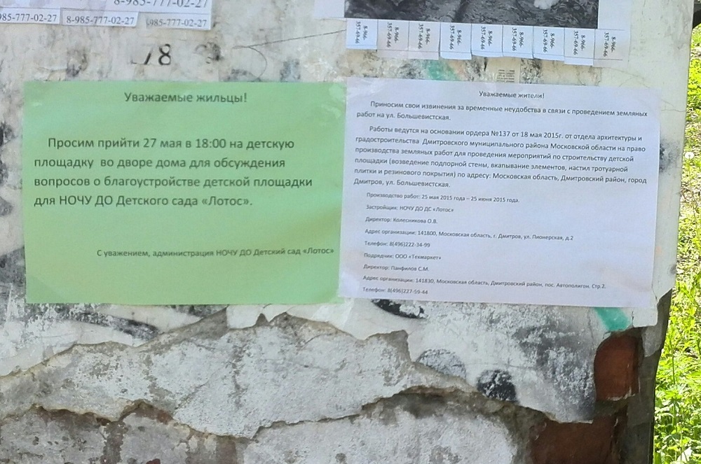 Строит судя по всему Лотос, детскую площадку. Если верить объявлению, вроде как и разрешение есть.