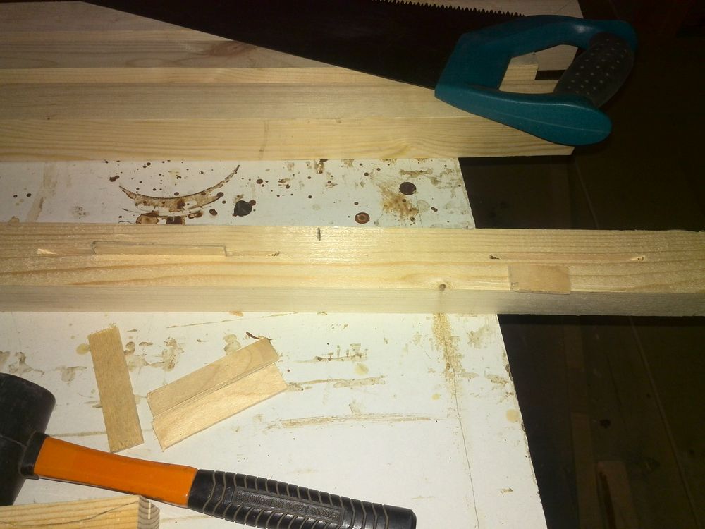 Поскольку конструкция получилась длинная а бруски были кривоватые, то для центровки решил выбрать пазы ламельным фрезером. Куда впоследствии были вставленные кусочки фанеру (ну вот кончались у меня все ламели.)