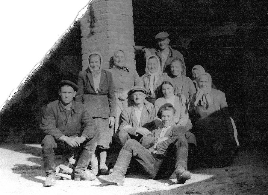 Из старого альбома. Родственники. В какой- то больнице после войны, футболисты на стадионе Авангард (один из них мой отец), колхоз Заря и дед с конем.