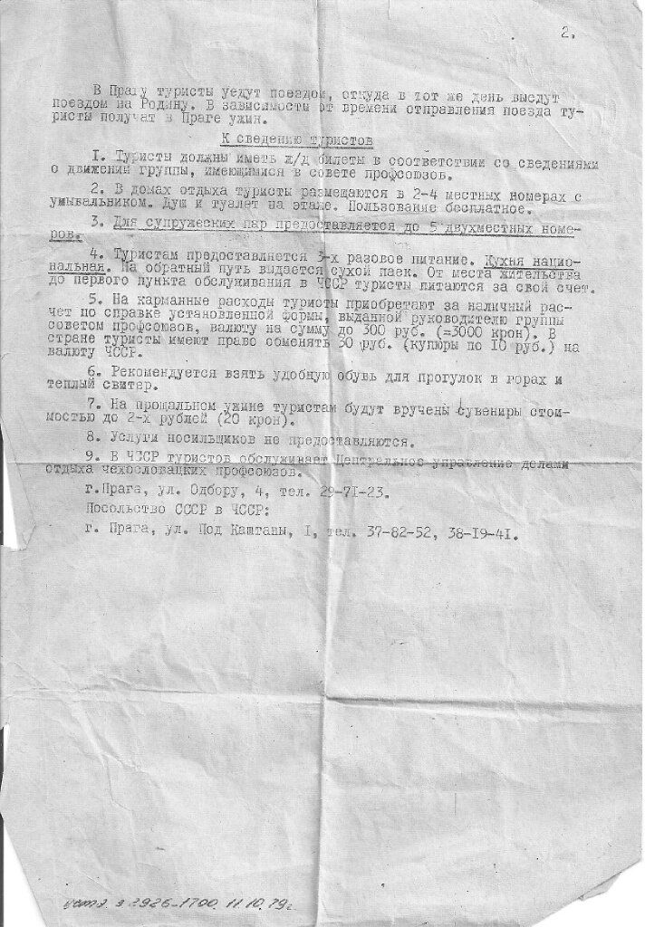 Инструкция для туристов, выезжавших в Чехословакию (1979 г.). И ВИА 70- годов из школы номер 8.