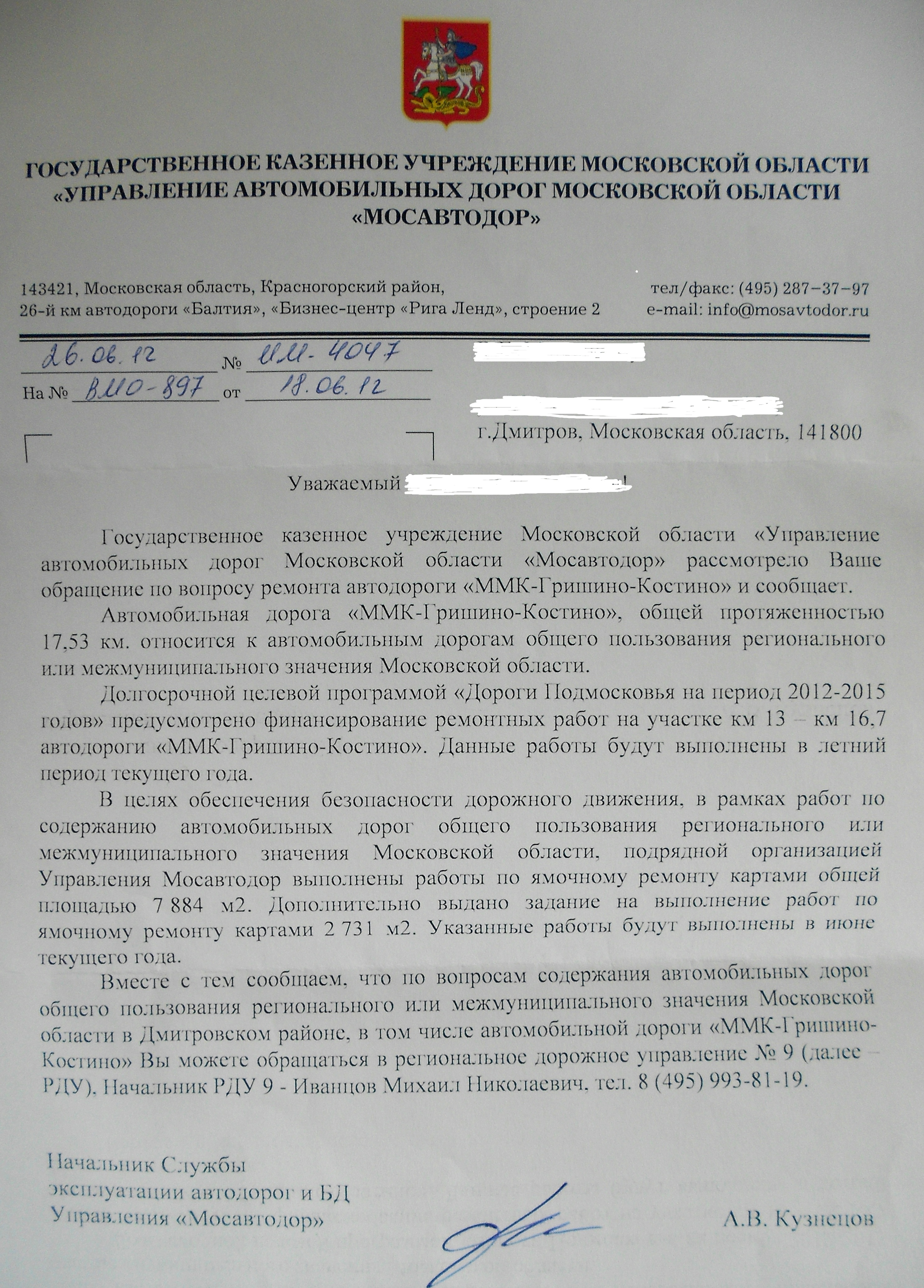 Так же написал в Мосавтодор. Вот ответ. Файл большой- просматривать в другой программе.