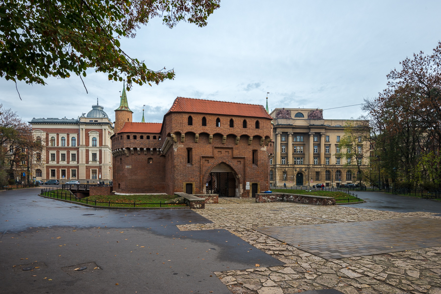 Первый костёл на этом месте был деревянный и когда он отслужил своё, в 1221-1222 годах был поставлен новый романский, по размерами близкий к сегодняшнему. Но и он был уничтожен во время набега татар. Позднее, фундамент того костёла был частично использован, когда в 1290 году началось строительство нового костёла, уже в готическом стиле. Именно поэтому сегодня он стоит под углом к Рыночной площади - ведь старый костёл строился ещё до введения локационного плана. В XIV-м веке здание было перестроено и окончательно приобрело готический стиль. Большая башня имеет высоту 81 метр. В средние века она была сторожевой, а восьмиугольное окончание приобрела в 1478 году; белая корона добавлена в 1664-м. Наконец, в XVIII веке интерьер костёла был перестроен в стиле барокко, и у костёла появляется притвор.