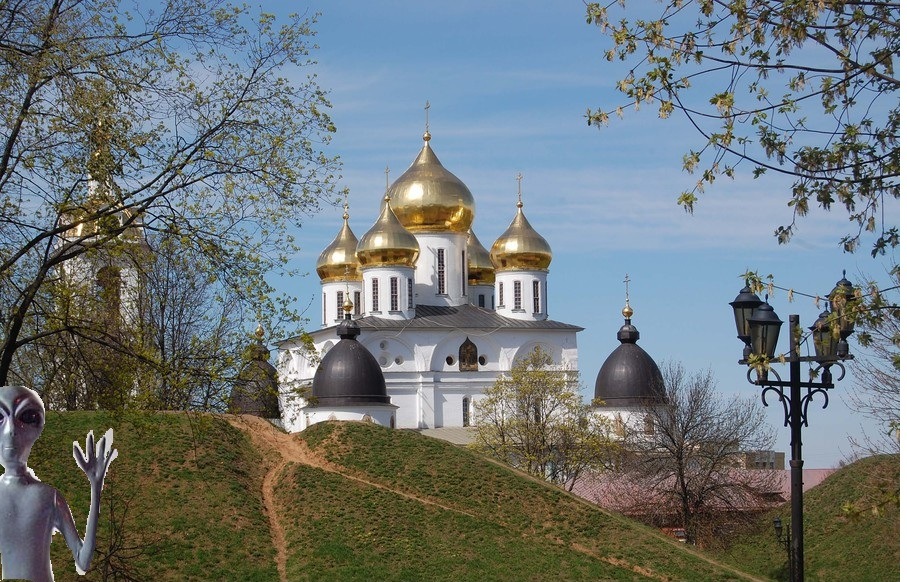 НЛО над Дмитровом. Сфотографировал Успенский кафедральный собор и Дмитровский вал.