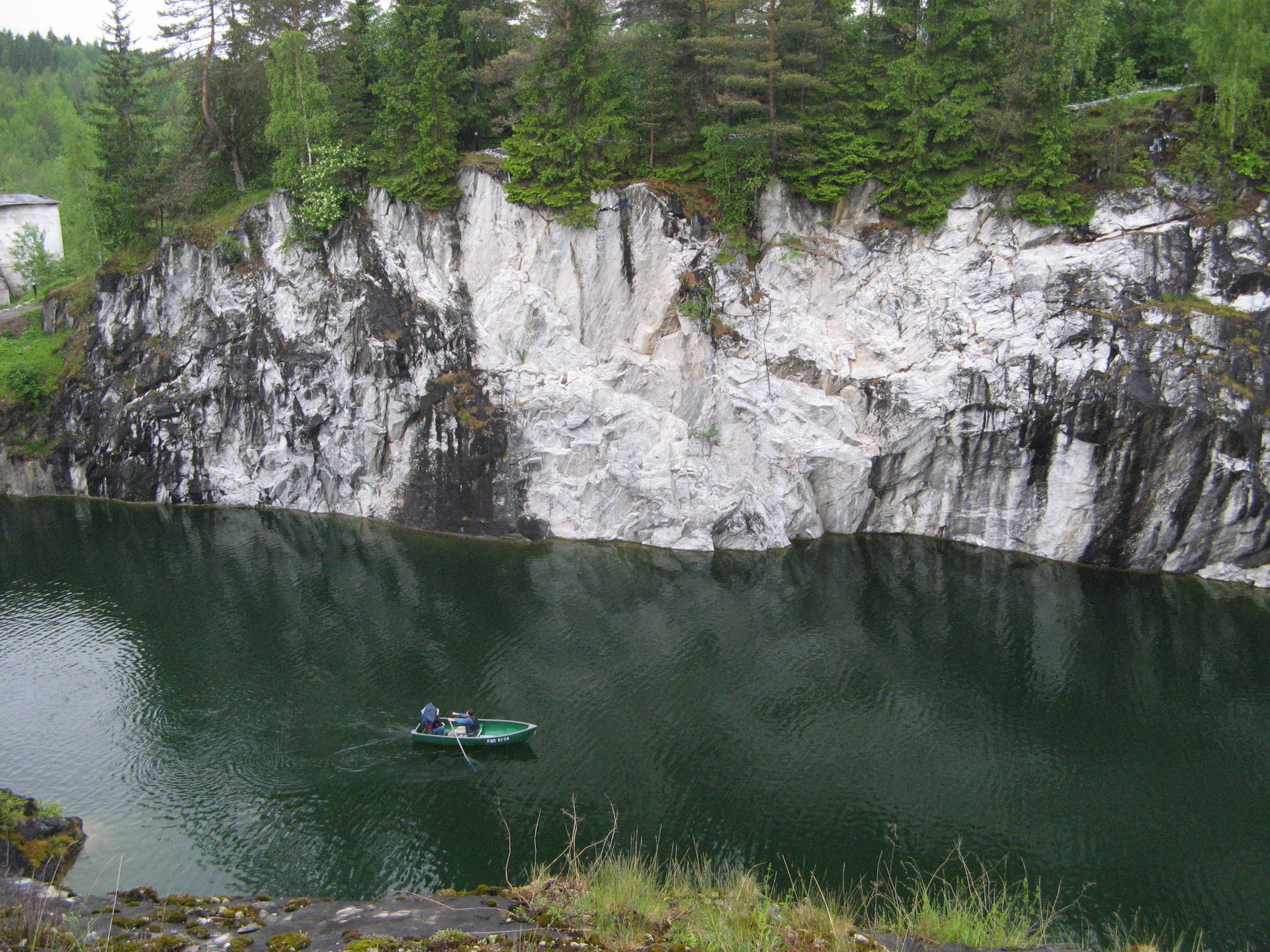 Рускеала. Здесь когда-то добывали мрамор, вода постепенно затопила рудник. У нас к сожалению не было времени покататься на лодке, обошли каньон вокруг, сходили в одну из галерей и в автобус.