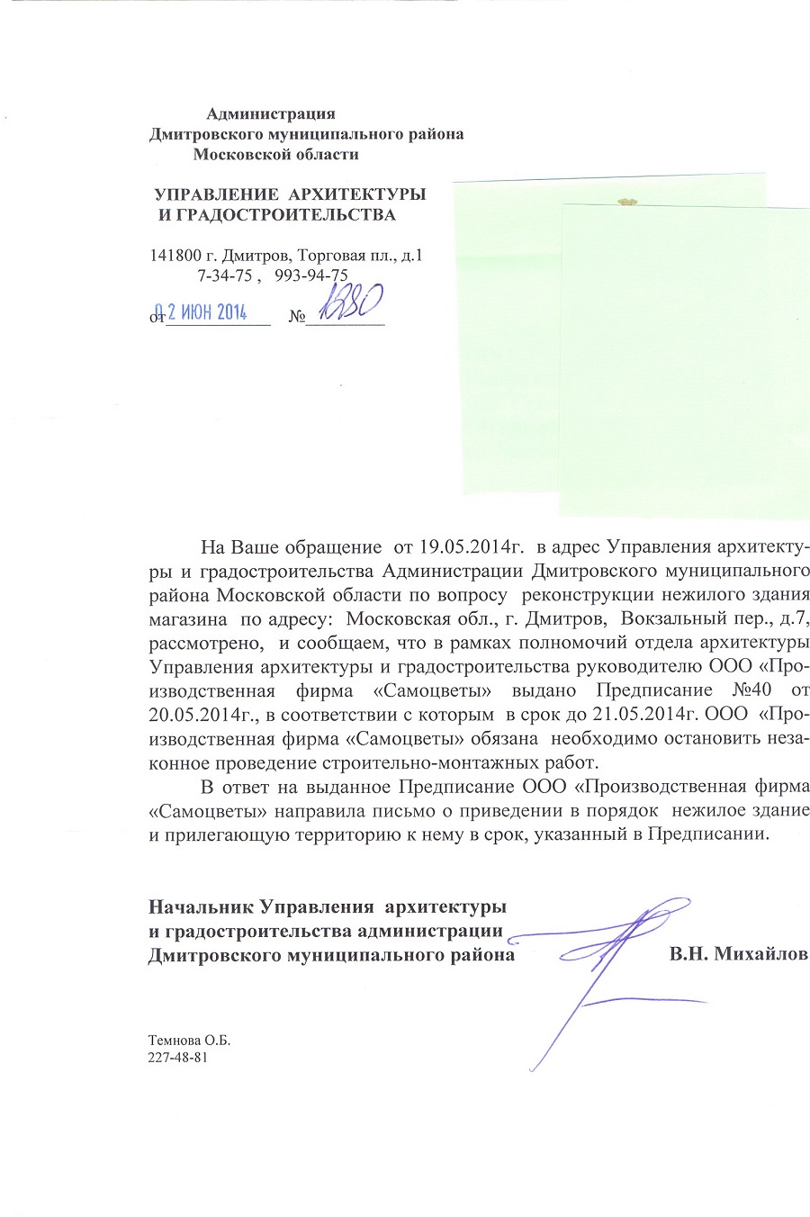 горожанин писал(а):Посмотрим - как Главный архитектор будет добиваться исполнения своего Предписания !