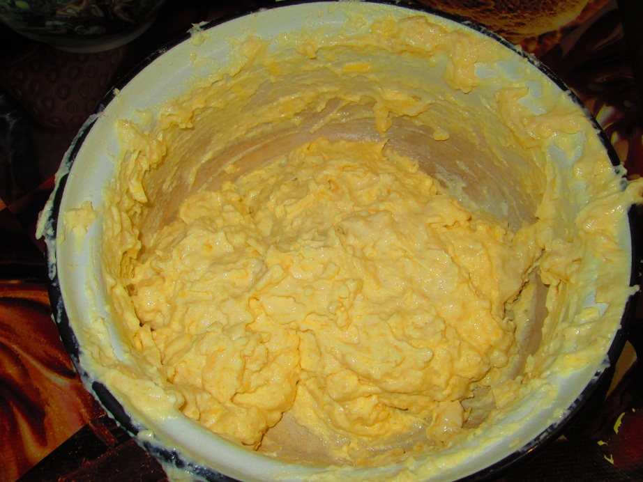 1. Перемешиваем все ингредиенты в миске (сыр, ессно, натираем). Тесто должно прилипать к рукам.