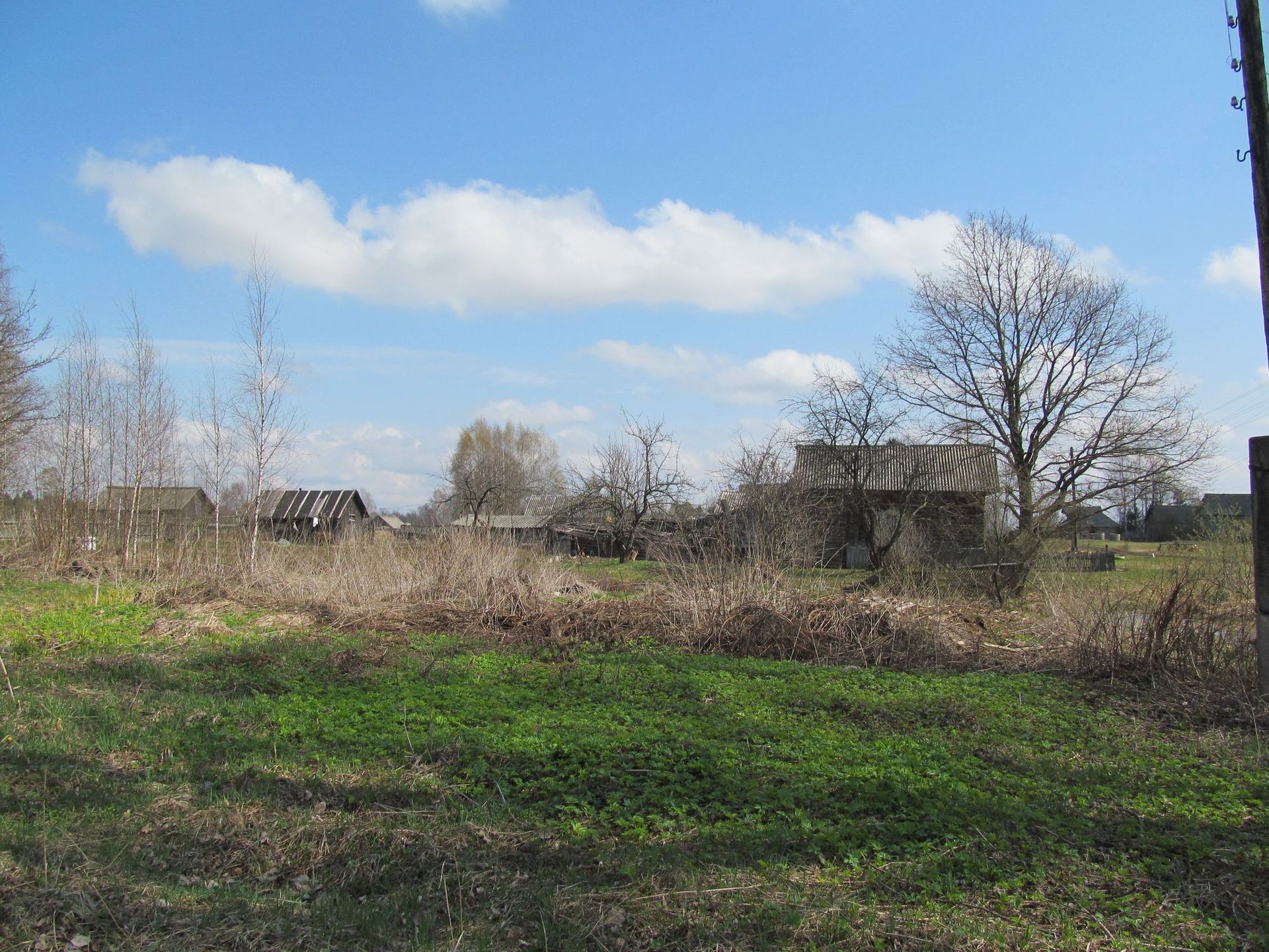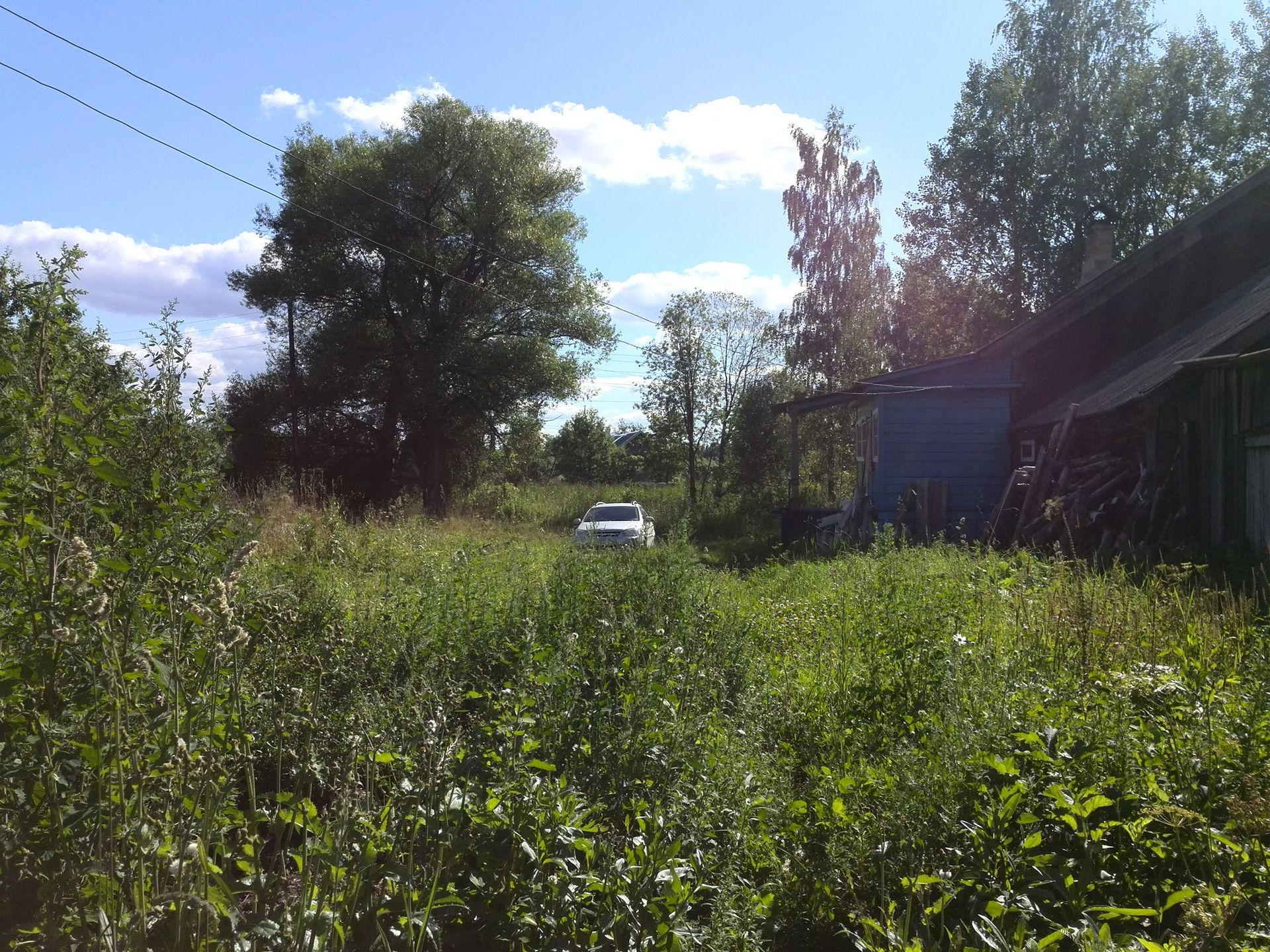 Так вот, находится она в 220-240 км (показания навигатора, одометра и гугла рознятся) от моего места жительства, в тверской губернии, в смысле области. До ближайшего городка где то километров 27. Вокруг полная тишина отсутствие засветки от фонарей и не стабильная мобильная связь, что меня кстати несколько не беспокоило. При желании позвонить всё же можно было, да и в доме был стационарный телефон. Постоянно жилых домов там наверное штук 8-10, а всего наверное домов 30. Какая то часть разрушена, в какую то часть приезжают на выходные или по сезону.