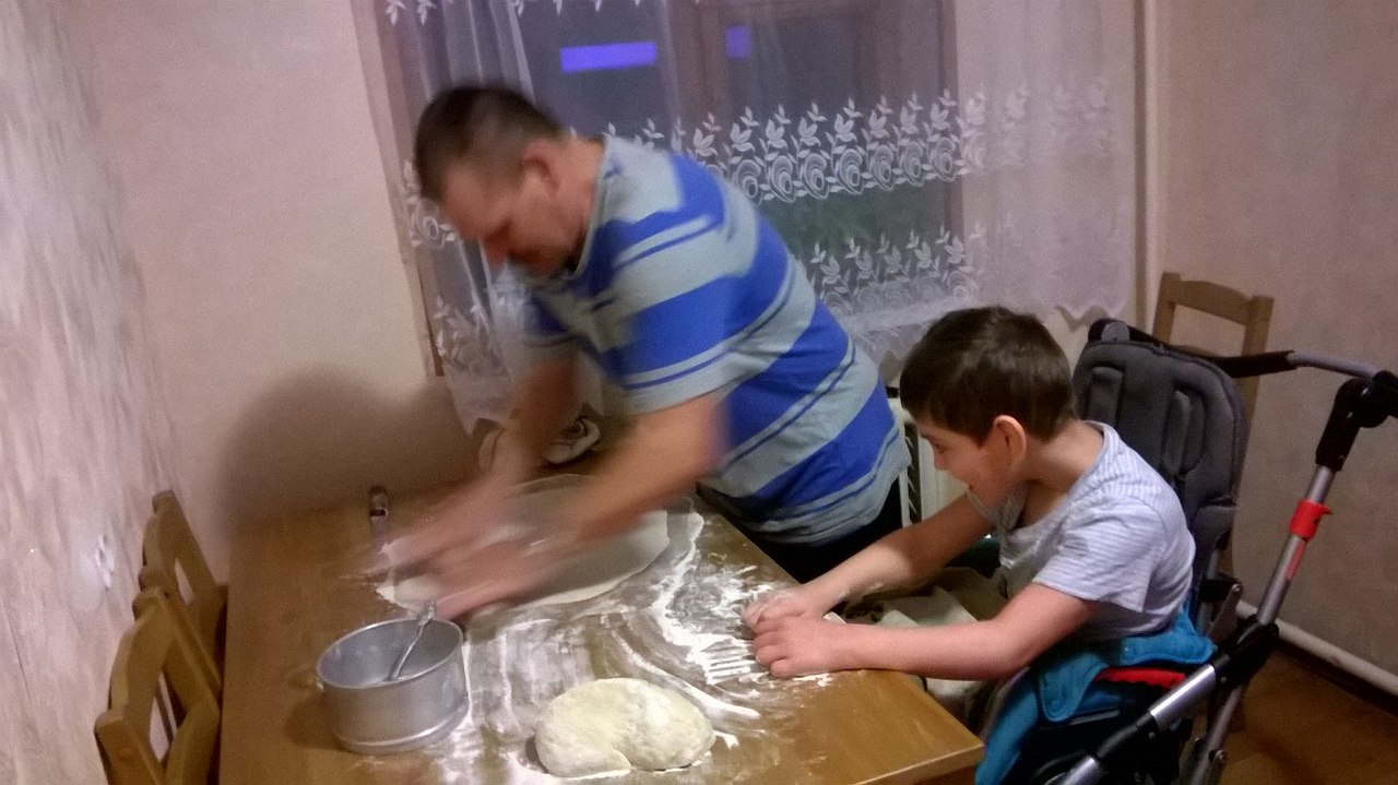 Максим деду помогает делать вареники