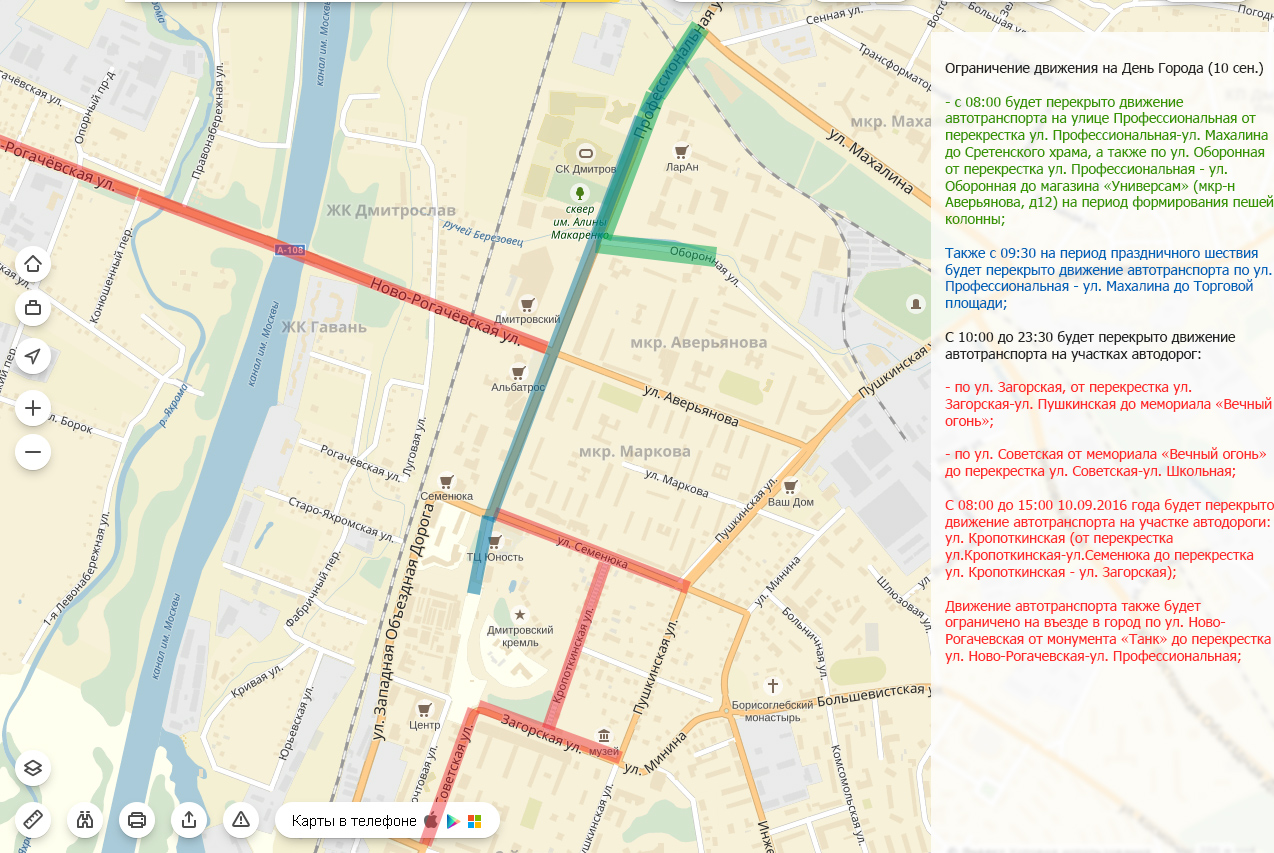 Перекрытия дорог, день города 2016