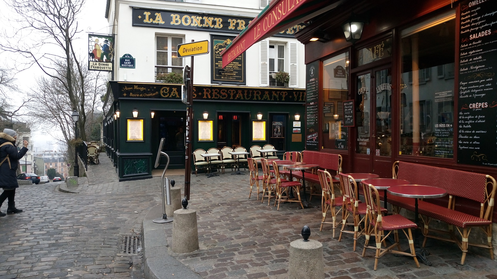 Монмартр с его улочками, художниками, кафе, магазинчиками и мельницами.